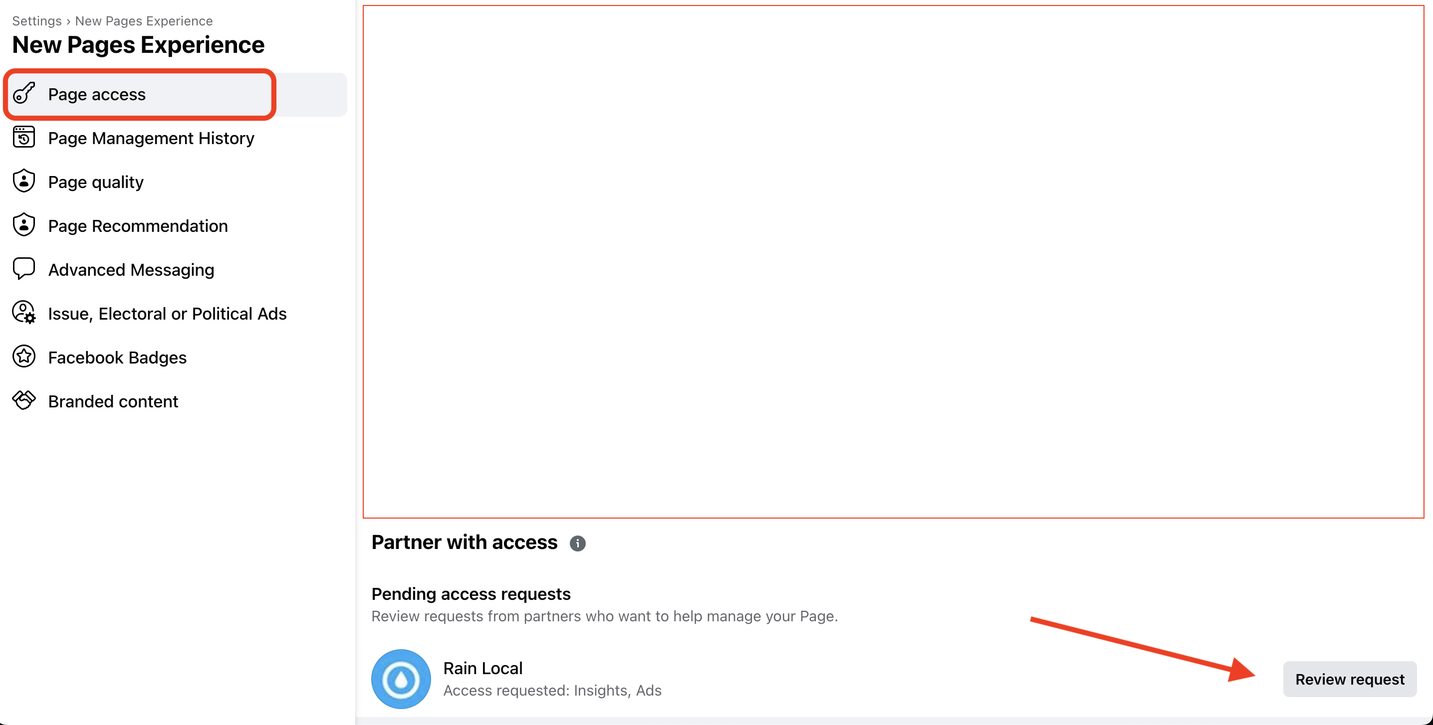 If your Facebook page is not associated with a Business Portfolio, that’s OK. As long as you have admin access to your business page, the request we sent can also be accepted through Facebook Page Settings. Note: if you do have a Business Portfolio set up, our request will not be visible through Facebook Page Settings.